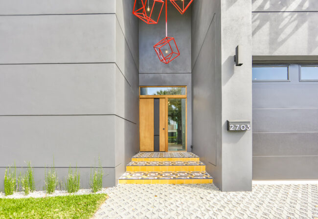 Dark and Moody Riverside Heights Custom Home with 3 Bedrooms, 5 Bathrooms, an Office, Gym and Pool with extreme depth and dimension accentuated by black paint, artistic murals, and designer wallpaper throughout.