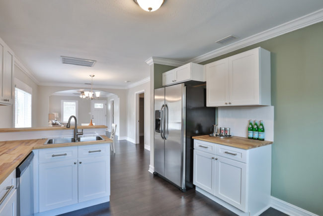 Mid-Century 3 bedroom, 2 bath home in Tampa Heights with retro design tile work and appliances.